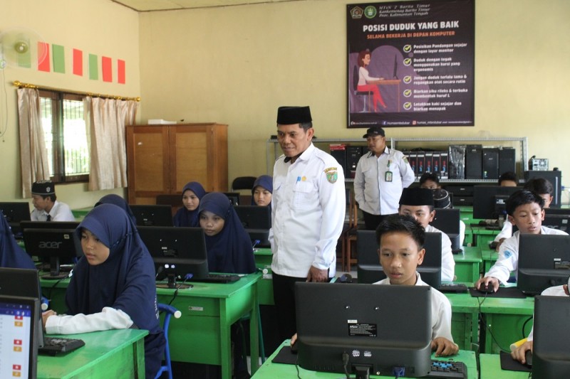 Pelaksanaan AKMI Jenjang MTs Hari pertama periode keempat yang dilaksanakan di MTsN 2 Bartim bertempat di laboratorium komputer ditinjau langsung oleh H. Fatchur Rozi, S.Ag selaku Kasi Pendis Kankemenag Kabupaten Barito Timur Selasa, 27 September 2022.