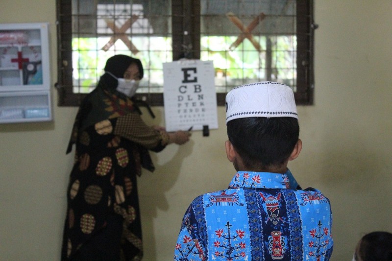 Kegiatan pemeriksaan kesehatan ini dilakukan secara bergantian dengan total 168 siswa yang diperiksa (Humas).