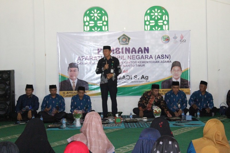 Kegiatan Pembinaan ASN (Aparatur Sipil Negara) yang dilaksanakan oleh Kepala Kantor Kementerian Agama Kabupaten Barito Timur Bapak H. Ahmadi, S.Ag di Mushola Al-Ghazali MTsN 2 Barito Timur (Rabu, 02/11/2022). Kegiatan ini dihadiri oleh seluruh ASN di bawah naungan Kankemenag Bartim.