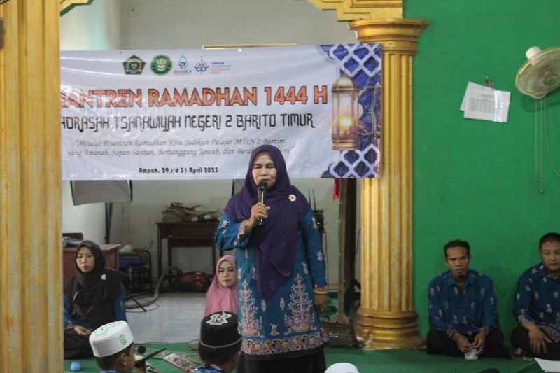 Pada kegiatan tersebut ibu kepala madrasah memberikan pesan sekaligus sambutan terkait pelaksanaan kegiatan ini "Dengan dibukanya secara resmi kegiatan pesantren ramadhan 1444 H kali ini, semoga seluruh rangkaian kegiatan yang akan kita laksanakan mulai tanggal 29 sd 31 Maret 2023 mendapatkan rahmat dari Allah SWT, ibu berpesan maksimalkan kegiatan ini dengan baik, kali sebanyak-banyaknya ilmu pengetahuan dan keberkahan selama kegiatn ini berlangsung."