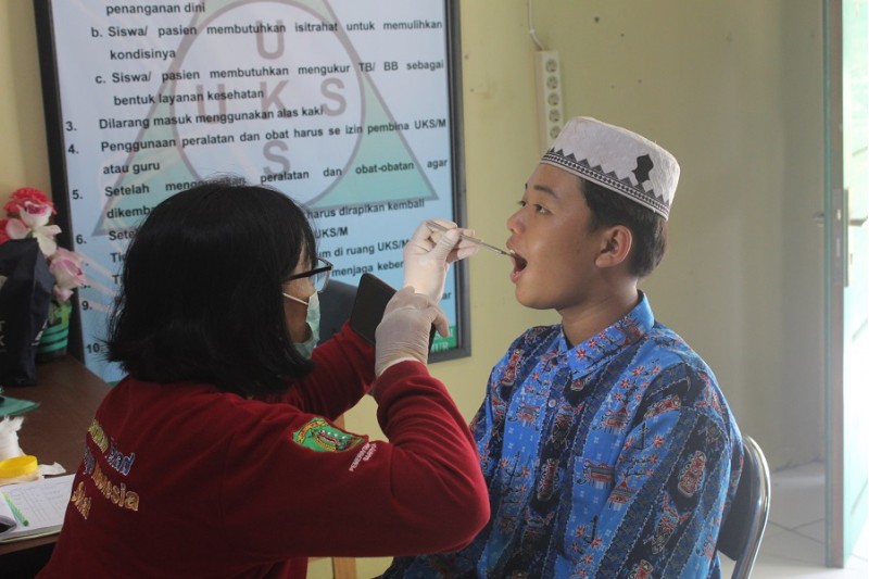 Kegiatan pemeriksaan gigi dilaksanakan secara bertahap mulai dari penyuluhan pentingnya menjaga kesehatan gigi dan mulut dan kegiatan pemeriksaan gigi dan mulut terhadap peserta didik.
