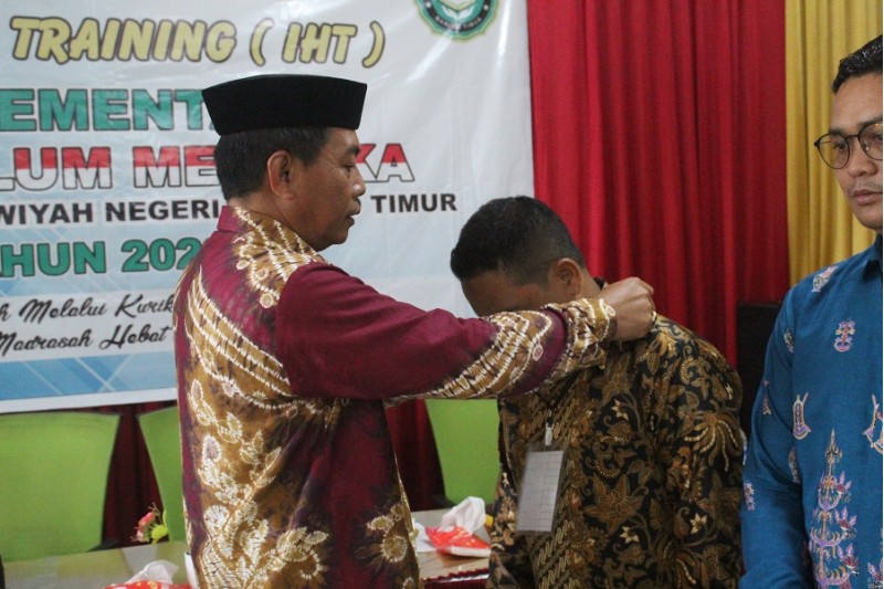 "lewat pelaksanaan In House Training implementasi kurikulum merdeka ini, mari kita sama-sama wujudkan keinginan pemerintah untuk mengamalkan kurikulum yang berorientasi pada peserta didik, yang menjadi dasar dari dilaksanakannya kurikulum merdeka di madrasah" tambah beliau.