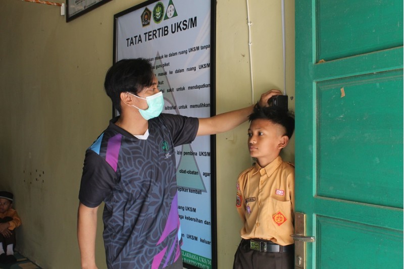 Ampah (05/09/2023) belum lama tadi pemeriksaan kesehatan remaja dari UPTD Puskesmas Ampah terhadap seluruh siswa kelas VII yang merupakan bentuk kegiatan rutin yang selalu dilaksanakan yang merupakan bagian dari kerja sama antar UPTD Puskesmas Ampah dengan pihak MTsN 2 Bartim. Kegiatan ini dilaksanakan di ruang UKS MTsN 2 Bartim yang mana seluruh siswa dari kelas VII A sampai dengan VII G dipanggil perkelas untuk melakukan pemeriksaan mata dan lainnya.