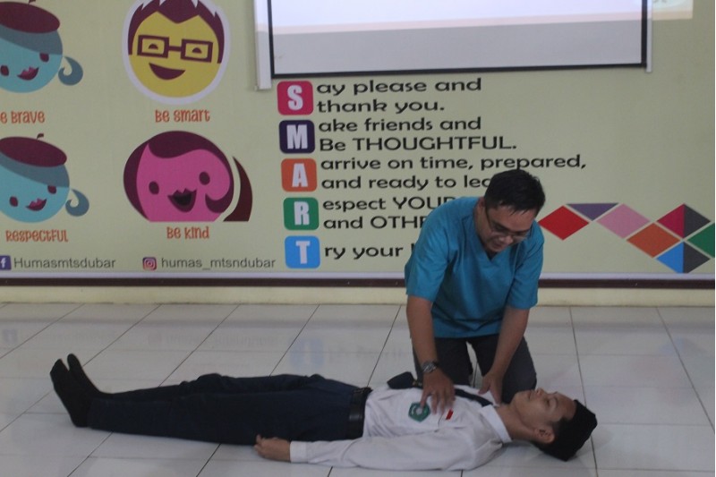 Di tengah-tengah penyampaian materi beliau juga mempraktekan secara langsung penanganan yang benar ketika menemukan korban dan cara melakukan pertolongan pertama terhadap korban dimulai dari mengecek kesadaran korban dan seterusnya.