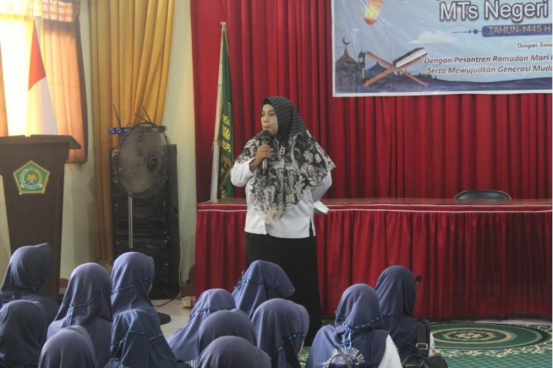 Ampah, (Humas) Pelaksanaan kegiatan Pesantren Ramadan 1445 H yang dilaksanakan mulai tanggal 18 sd 23 Maret 2024 secara resmi dibuka oleh ibu Kepala Madrasah Dra. Hj. Paridah. Kegiatan ini menggunakan tiga ruangan terdiri dari ruang Smart Class untuk siswa kelas IX, Ruang Perpus untuk siswa kelas VIII dan Musholla Al-Ghazali untuk siswa kelas VII. Adapun untuk kegiatan pembukaan dilaksanakan di ruang musholla Al-Ghazali MTsN 2 Barito Timur yang dihadiri oleh seluruh siswa beserta dengan guru dan staf TU.