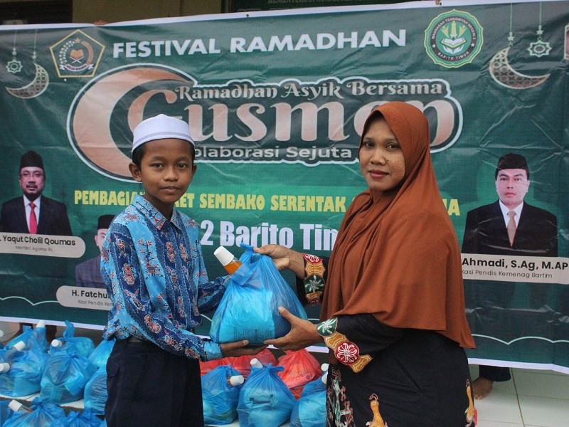 SelengkapnyaAmpah (Humas) MTsN 2 Bartim bagikan 100 paket sembako kepada anak yatim kurang mampu dalam rangka kegiatan festival ramadan, Kamis, 28/03/2024. Kegiatan ini dilaksanakan di halaman kantor madrasah yang dihadiri oleh seluruh dewan guru dan staff, yang mana penyerahan paket...